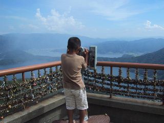 平日でも結構いました。右の写真、手すりについてるのは鍵です。