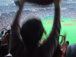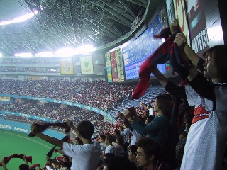 (そのときの盛り上がりです。ボクの座っているちょっと前にボールが来ました)