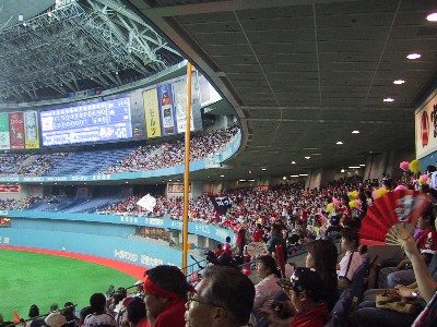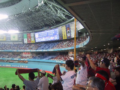 | 2003年6月7日(土) 最近年のせいか、朝早くに目が覚めます。 普段は会社に行くのでそのまま起きたりしますが、 今日は休みなので思いっきり二度寝。 と思ったら8時前に上司から電話が。 今日はゆっくり二度寝が楽しめると思ったのに、、、。 ま、仕方がないので起床。 6月4日から近鉄の特急券が チケットレスでOKになったということで、 早速本日実験してみました。 (以前はケータイで予約しても、 駅のホームにある端末を使って、 クレジットカードで購入してました。) (新しいシステムは、 予約・購入結果を画面メモして、 必要があれば見せるというもの。) 今日は大阪ドームに行くので、 たかだか西大寺から鶴橋までですが、 (特急料金一人500円ですが) (乗車時間は30分未満ですが) ケータイから予約・購入してみました。 さてさて、息子はどーしても友達と遊びたいようで、 かみさんと二人ではありますが、 予定通り大阪ドームへ。 徒歩通勤なので、電車に乗ること自体が、 そして特急に乗ることが久しぶり。 今日の大阪ドームは対西武戦。 この3日間は「レッドdeハッスル」で、 各日先着1万名に赤いフルスイングTシャツプレゼント! だそうです。 (詳しくはこちらへ。おそらく期間限定) 今回は内野自由席でも外野寄り。 つまり私設応援団の比較的近く。 ![]() (なにしろ出かける前に Buファンサイトから応援歌を印刷してきました。) 1回の裏に5点を先制。大盛り上がりでした。 Buキャラのファルルちゃんです。 ![]() そして相変わらずの ラッキーセブンの前のバルーン応援。 ![]() 土曜日ということで結構埋まってるでしょ。 ![]() チャンスのときのタオルの応援です。 ![]() 扇子もあるよ。 (それぞれ応援歌があります。) 昨日に引き続き延長戦でどうなるかと思ったら、 勝っちゃいましたね。 (時間が経っていたので9回裏で席を立ちました) 来週は新たな種目に挑戦予定です。 近鉄沿線にラグビー界の聖地(?)、 花園ラグビー場があります。 そこで6月15日に韓国との試合があるのです。 明日6月8日の長居でのサッカー (対アルゼンチン戦)はチケットが取れなかったので、 仕方ありませんね。 ラグビーはまだまだサッカーに比べると メジャー度合いが低いようで、、、。 もともとラグビーは好きな種目なので楽しみです。 でもケータイが気になるのだ、、、。 だってauでもメガピクセルのケータイだし。 ついにソニーから離れるか? |