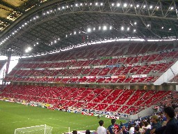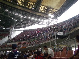 行って来ました!名古屋まで。 正確には豊田市の豊田スタジアムまで、 FC東京の試合を観戦に。 交通費を安くあげようと、 近鉄の全線乗車券を使って、 行きは急行を乗り継いで名古屋まで。 名古屋からは名鉄で知立経由で豊田市へ。 とにかくそのスタジアムを自分の目で確かめてみたかった。 駅からトボトボ雨の中を歩き、橋を渡る頃に見えてきました。 ![]() 周りに比較するような建物が無いから、 余計にその大きさに圧倒されます。本当にデカイ。 ![]() 中に入るとピッチの上まで屋根が覆い、 雨や風がしのげるのは助かった。 観客席の角度がものすごく、 今日は閉鎖されてたけど 下から見ていてもメマイがするかんじ。 満員になったらなったで物凄いんだろね。 名古屋の観戦は初めて。 当たり前か。 やはりゴール裏は熱い。 東京のゴール裏もアウェーだけど 神戸の時より確実に入ってる。 神戸より東京に近いんだから当たり前だな。 試合開始直前にコアサポが2階に移動。 応援が響かないからか? ![]() ゴール裏が空いたのでボクも移動。 前半に1点入れられ、やな感じ。 でも後半にやってくれました。 ルーカス、ゴーーーーール!!!! ![]() って、ゴールする直前のシーンです。これ。 結果は1-1のドロー。 消化不良気味だけど、勝ち点1だから良しとするか。 ![]() すばらしいスタジアムだよ。 芝の状態は神戸ウイングの次くらいに悪そうだけど。 帰りの道案内が悪く、迷いそうになったよ。 来た経路を逆に辿り、名古屋へ。 名古屋からはちょっと贅沢に アーバンライナーネクストのデラックスシートで。 なんだか長い一日でした。出張よりもきついかも。 |